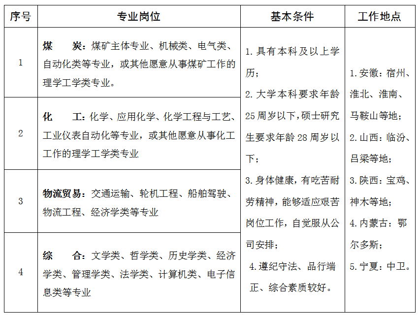4.应聘渠道以皖北煤电集团公司网站为准,招聘不收取任何费用!