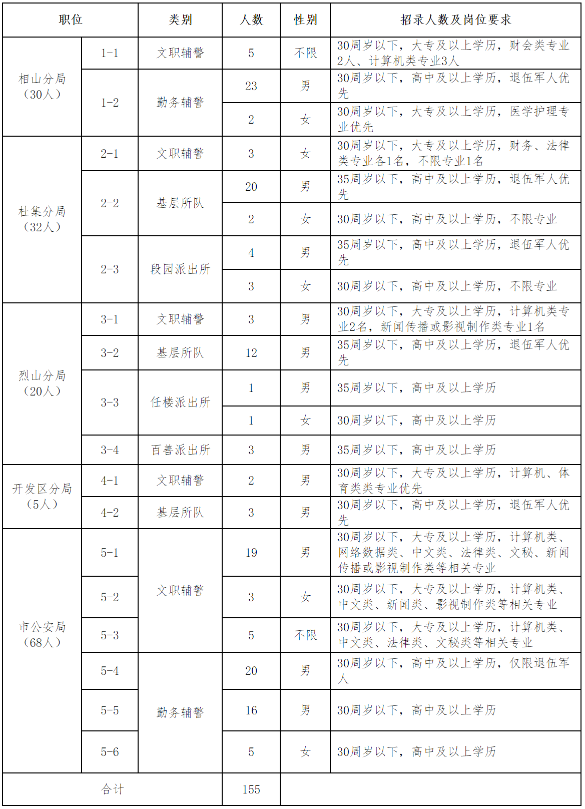 原标题:淮北市公安局招聘辅警公告