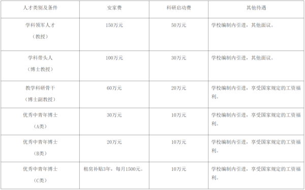 3.引进程序:学校采取“一事一议”方式进行,基本流程为报名、资格审核、综合考核、体检、考察、拟聘公示、签约聘用。