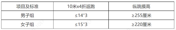 2.此次体能测试参照《关于印发公安机关录用人民警察体能测评项目和标准(暂行)的通知》(人社部发〔2011〕48号),测试内容为10米×4折返跑、纵跳摸高两项。10米x4折返跑项目只测试1次,纵跳摸高测试项目不超过3次,缺考或未通过者,不予补考。